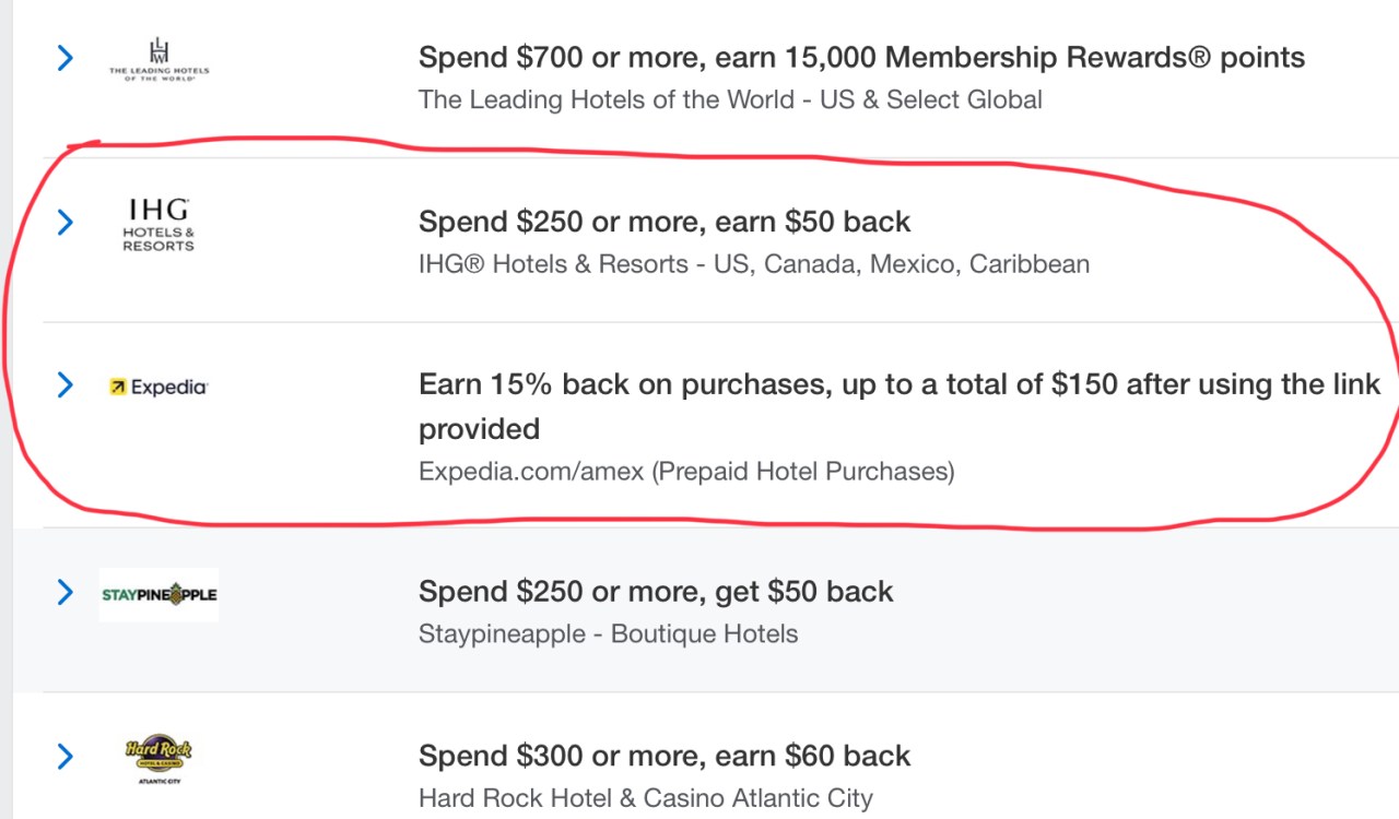 Check Your Credit Cards for Rebates! A lot of credit cards offer limited-time deals you have to click to add to your card, like the one pictured below. You can even take this a step further and load up on hotel gift cards during your rebate period for future use! Of course, always check the T&C to see if gift cards qualify for the rebate.